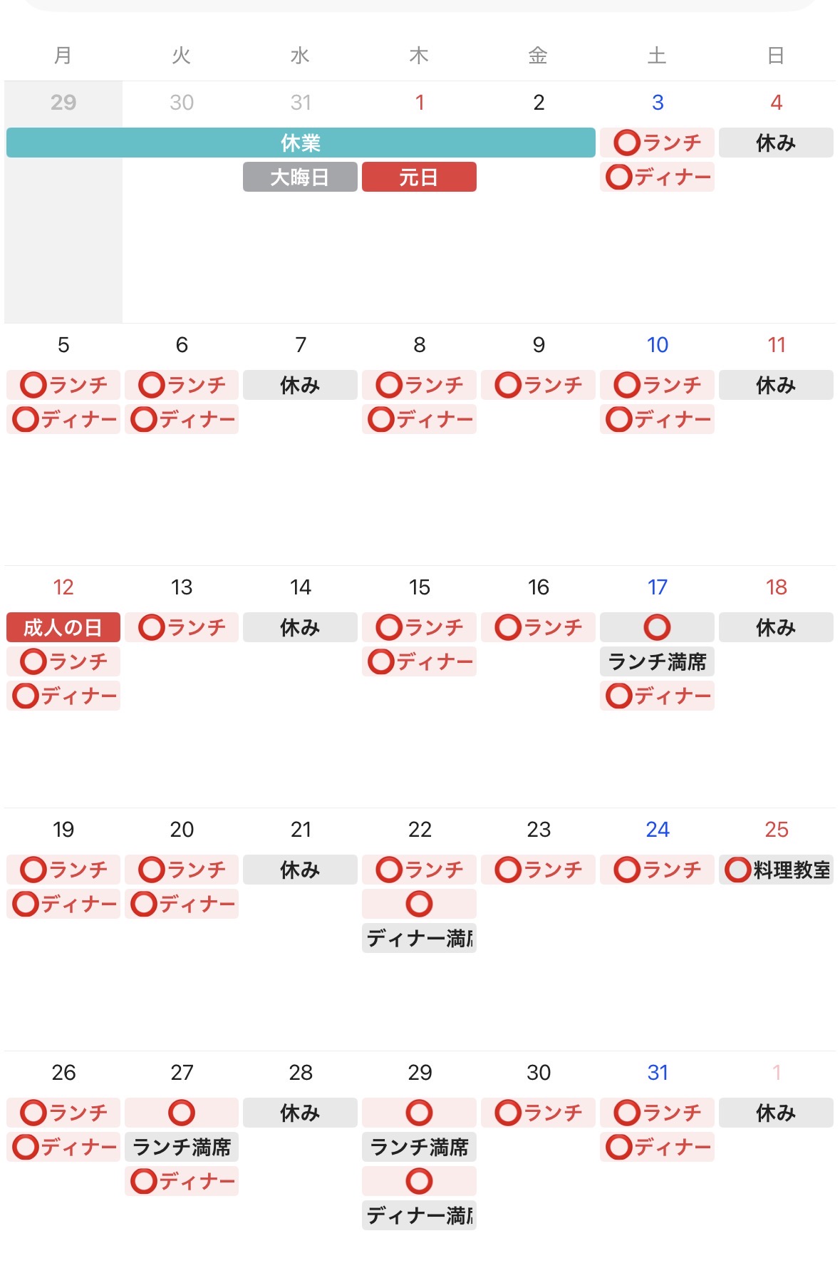 2日(木)ランチ(貸切)、6日(月)ランチ(貸切)